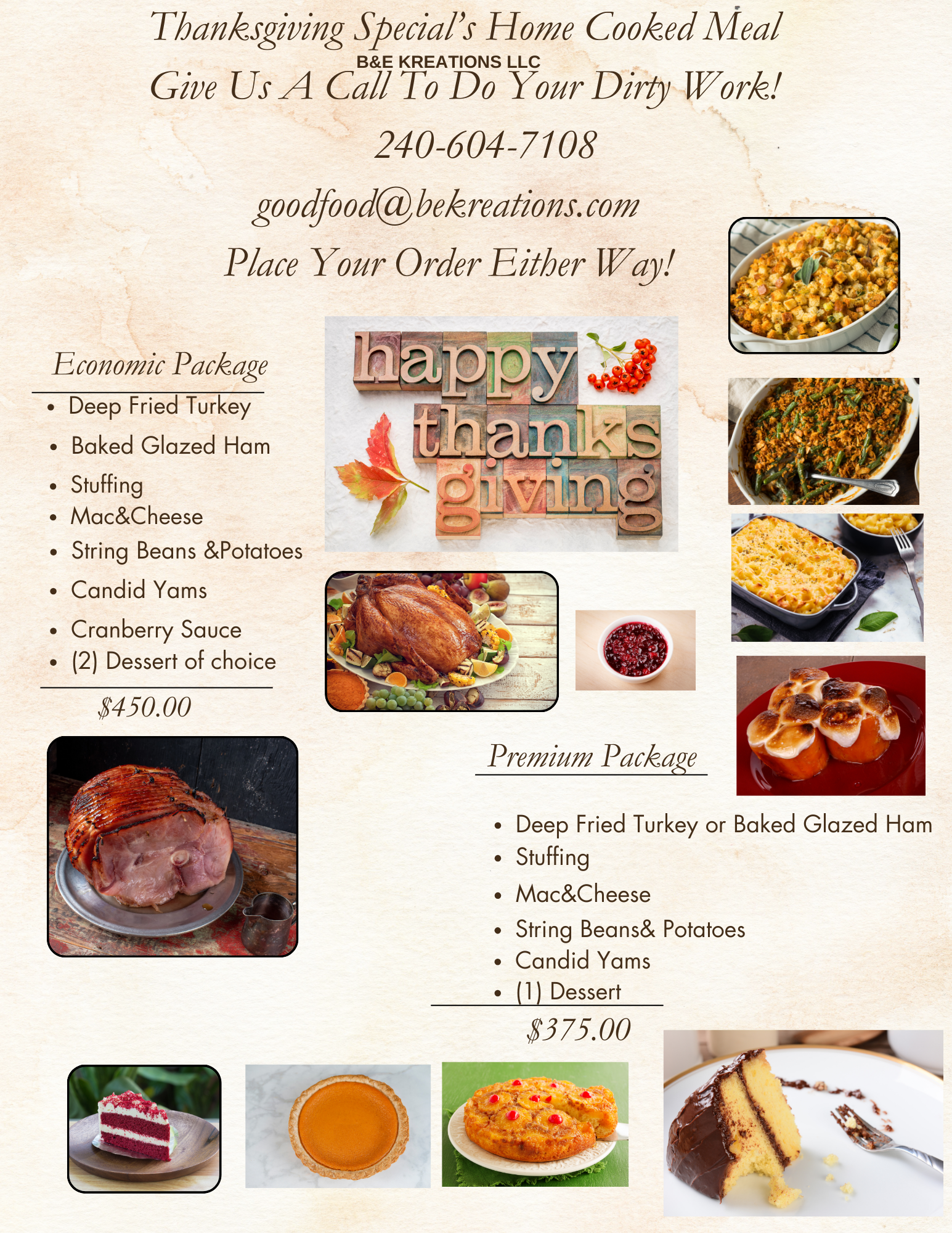 At B&E KREATIONS LLC, we specialize in crafting memorable culinary experiences for your events. Whether you’re hosting a corporate gathering, a wedding, or any special occasion, our expert catering services are tailored to meet your unique needs. Our team is dedicated to providing delicious food and exceptional service, ensuring that every guest enjoys a remarkable experience. Partner with us to elevate your event with our exquisite menu options and attention to detail.